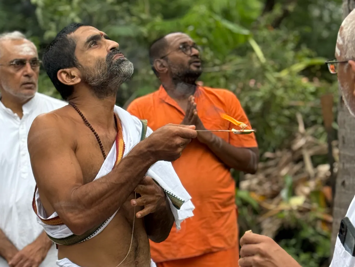 In keeping with the community spirit, Hridaya Kshetram provided meals for workers cleaning up after a busy Pournami.