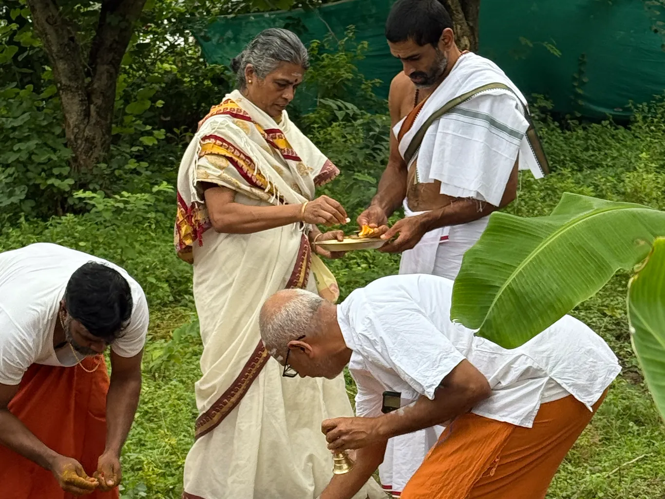Amma blessing the offerings to the Veda Vidyarthis.